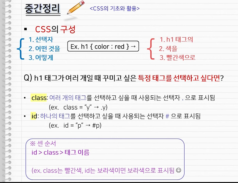 같은 태그에서 다른 색을 넣어주기 위해서는 클래스나 아이디를 통해 같은 태그들을 구분해주어야한다.