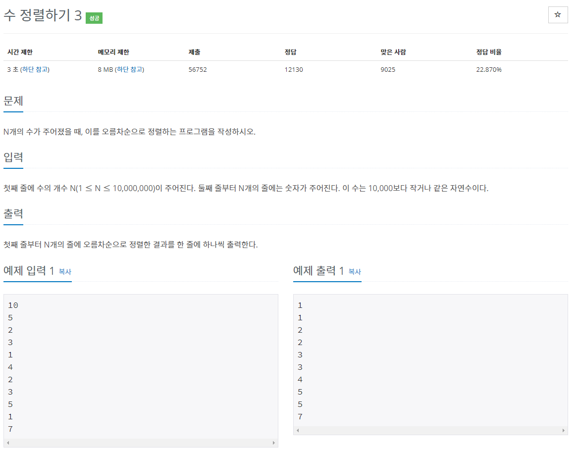 카운팅 소트를 어떻게 사용하는 지 알게되었다.
