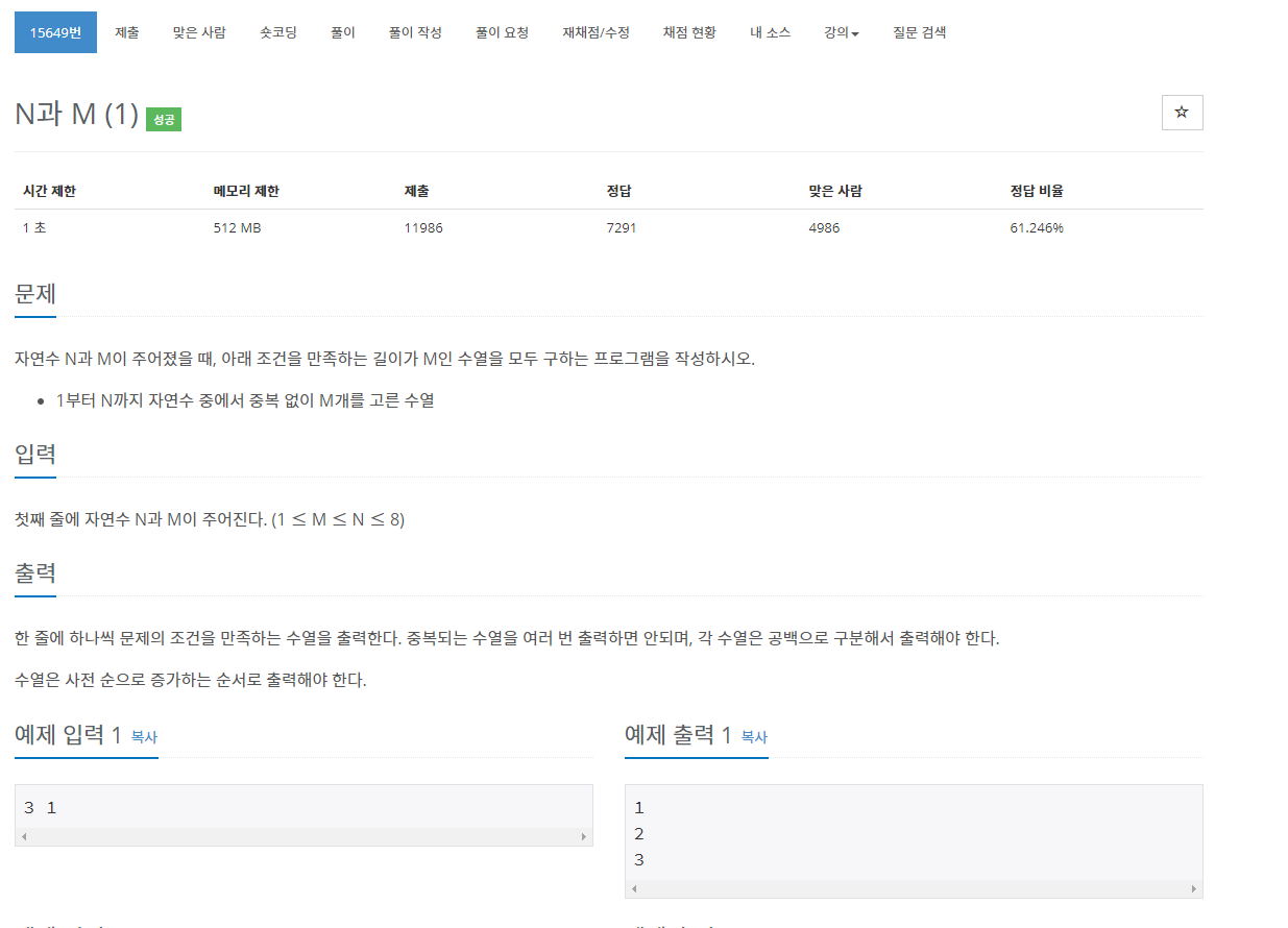 if(depth==m){ //숫자를 m개 뽑은 경우 출력