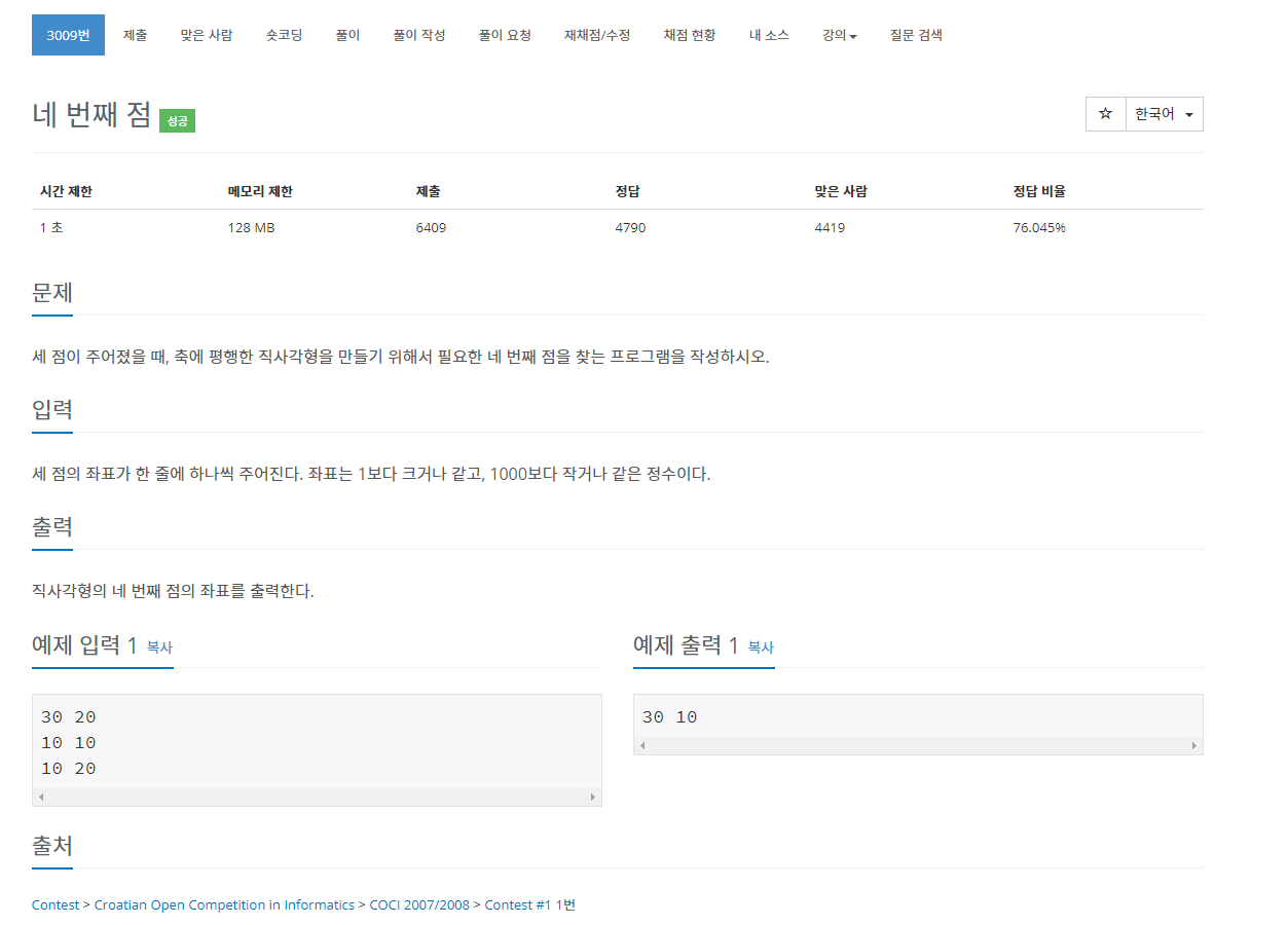 3009번: 네 번째 점
